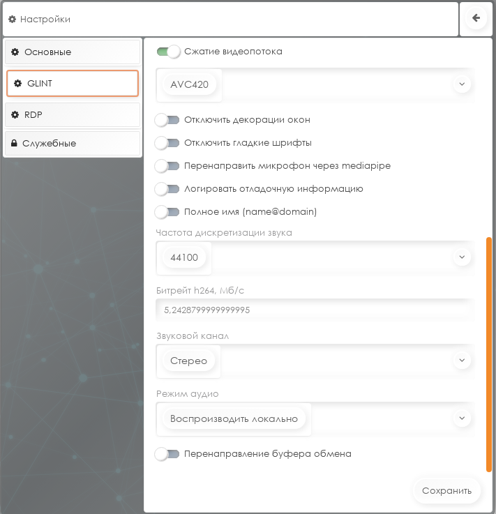 GLINT — протокол подключения пользователя к удаленному рабочему столу. Позволяет работать из любой точки мира с минимальной задержкой.