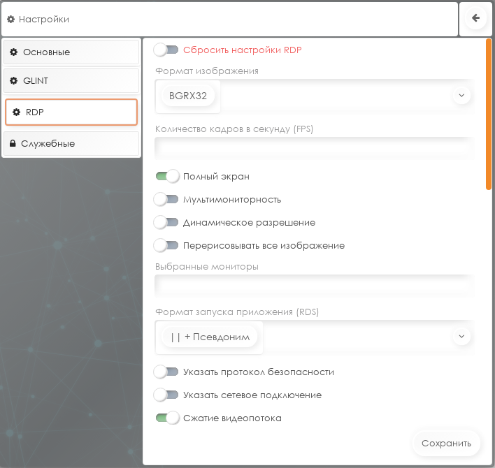 Для работы параметров "Отключить декорации окон" и "Отключить Windows темы" при подключении к Windows необходима настройка удаленной ВМ. При подключении к ОС Linux (xRDP) данные параметры не имеют эффекта.