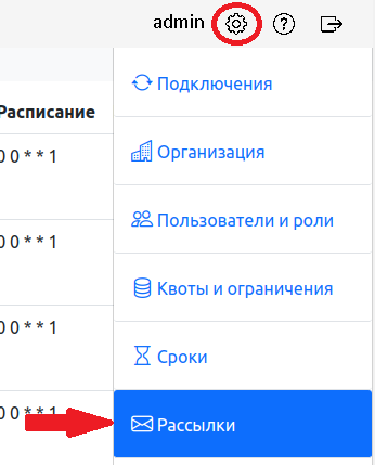 Раздел «Рассылки» доступен из меню «Администрирование».