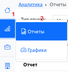 В разделе «Аналитика» (1) - «Отчёты» (2) доступны отчёты типа «Миграция виртуальных машин».