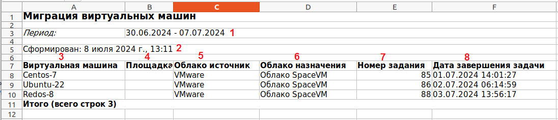 «Облако назначения» (6) отображает облако, в которое произведена миграция.
