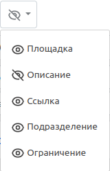Раскрывающееся меню (3) предоставляет выбор скрытия/показа колонок при отображении площадок.