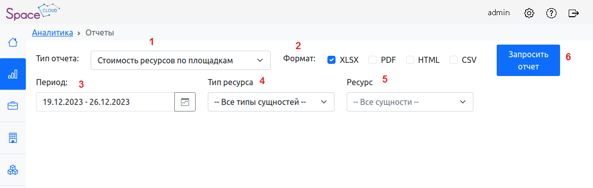 Для получения отчета с установленными параметрами необходимо нажать «Запросить отчет» (6). Нажатие на значок формата активирует скачивание выбранного отчета.