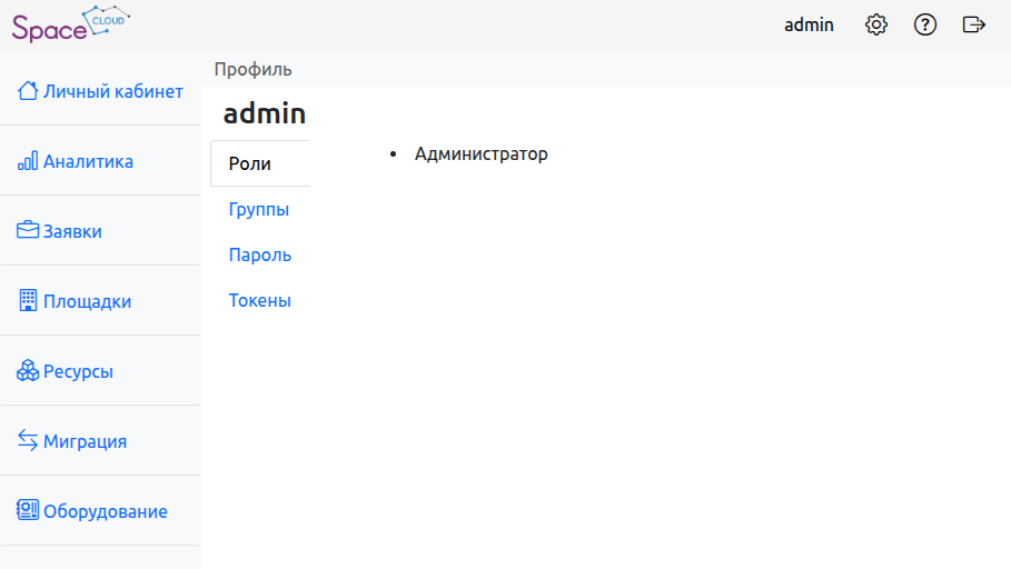 Элементы интерфейса могут отличаться в зависимости от роли и разрешений, назначенных пользователю.