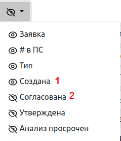 Нажатие значка (3) открывает меню визуализации колонок с информацией по заявкам.
