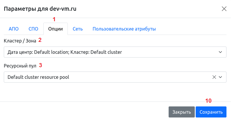 Если в поле «Кластер/Зона» для ВМ выбрана нода, то автоматически к этой ВМ и выбранной ноде применяется тег по имени ноды.