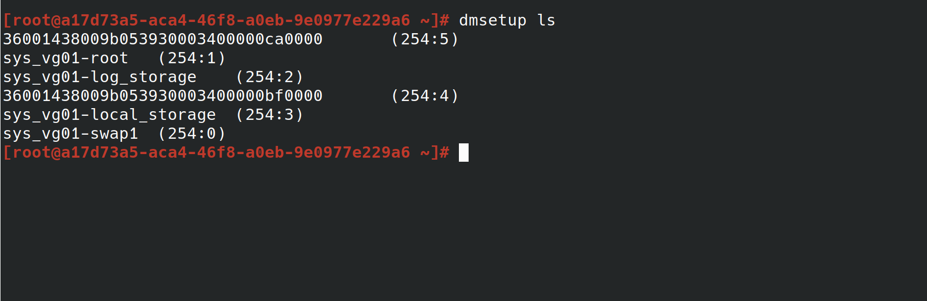 Чтобы узнать подробности о dm-устройствах в системе, необходимо выполнить команду shell: