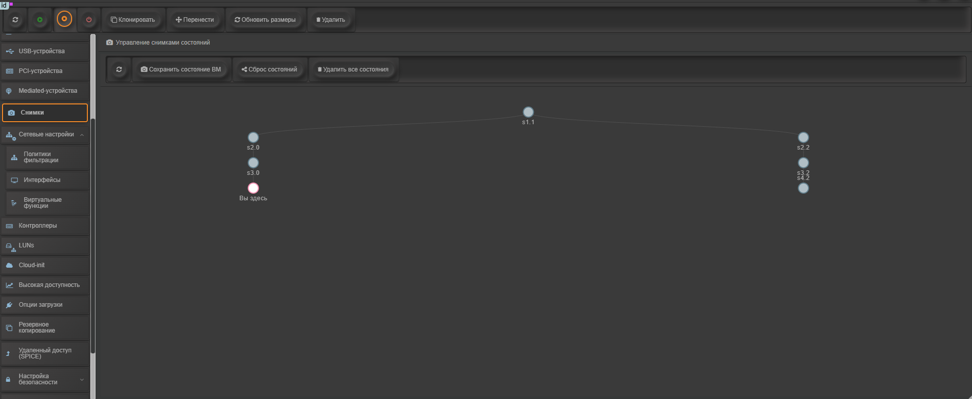 Снимки состояний ВМ в среде SpaceVM