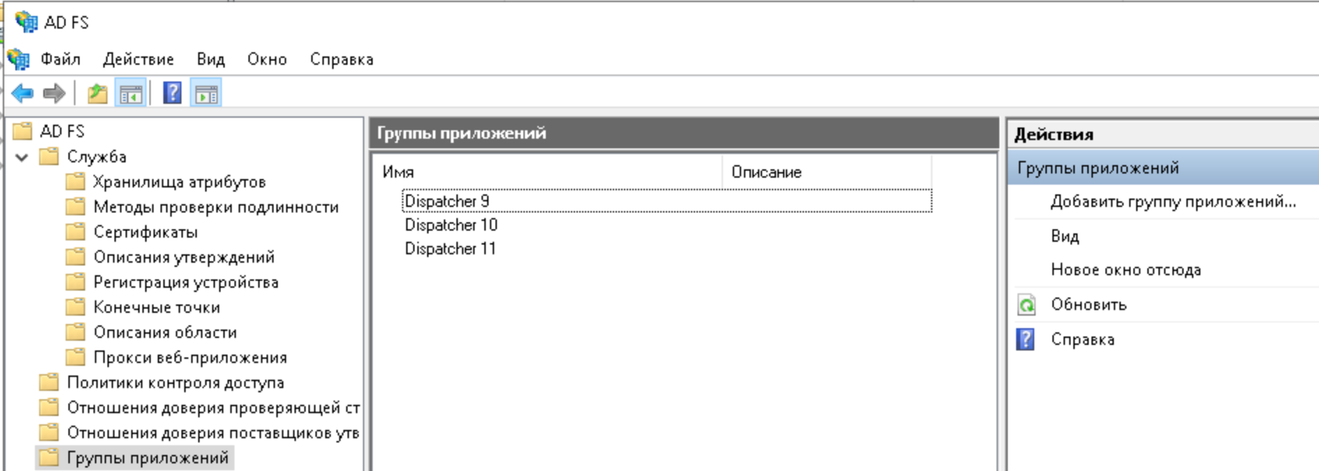 Добавление группы приложений на стороне AD FS (на примере Windows Server 2019)