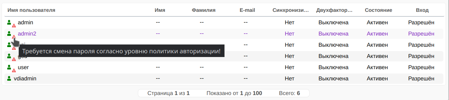 В Web-интерфейсе это требование отображается в виде восклицательного знака перед именем пользователя.