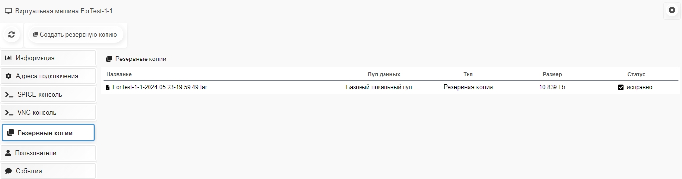 В подробной информации о выбранной ВМ и перейти в раздел Резервные копии.