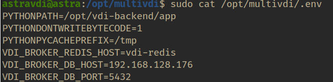 Проверить, что в файле /opt/multivdi/.env нет секретов.
