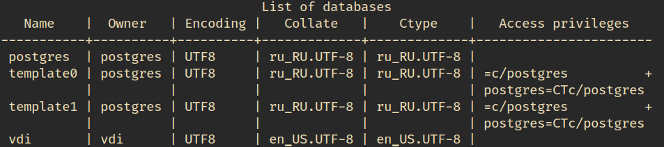 1.1. Необходимо проверить, не создались ли лишние БД, командой sudo -u postgres psql \l.