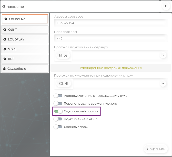 После включения двухфакторной аутентификации вход в среду Space Disp и Space Client будет осуществляться по локальному и 6-значному одноразовому паролям.