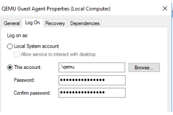 После установки qemu-guest-agent создайте административную локальную учетную запись, откройте службы Windows и настройте запуск службы qemu агентa не от local system, а от ранее созданной учетной записи.