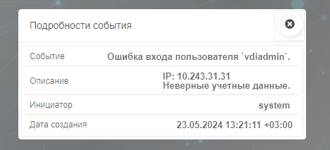 | EVENTS_SEND | Отправка событий во внешнюю систему журналирования |