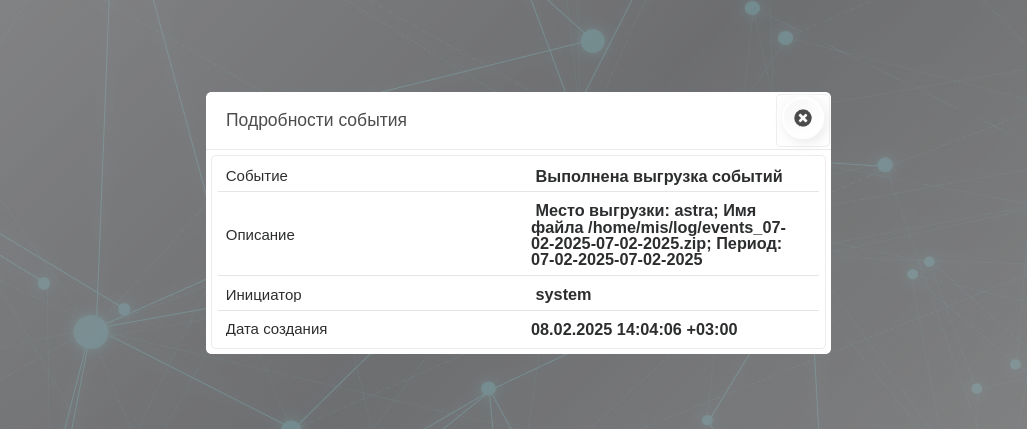 Архивы с событиями в целях отказоустойчивости сохраняются случайным образом на одном из узлов диспетчера. Имя хоста узла, на котором сохранены выгруженные события, можно увидеть в событии выгрузки.