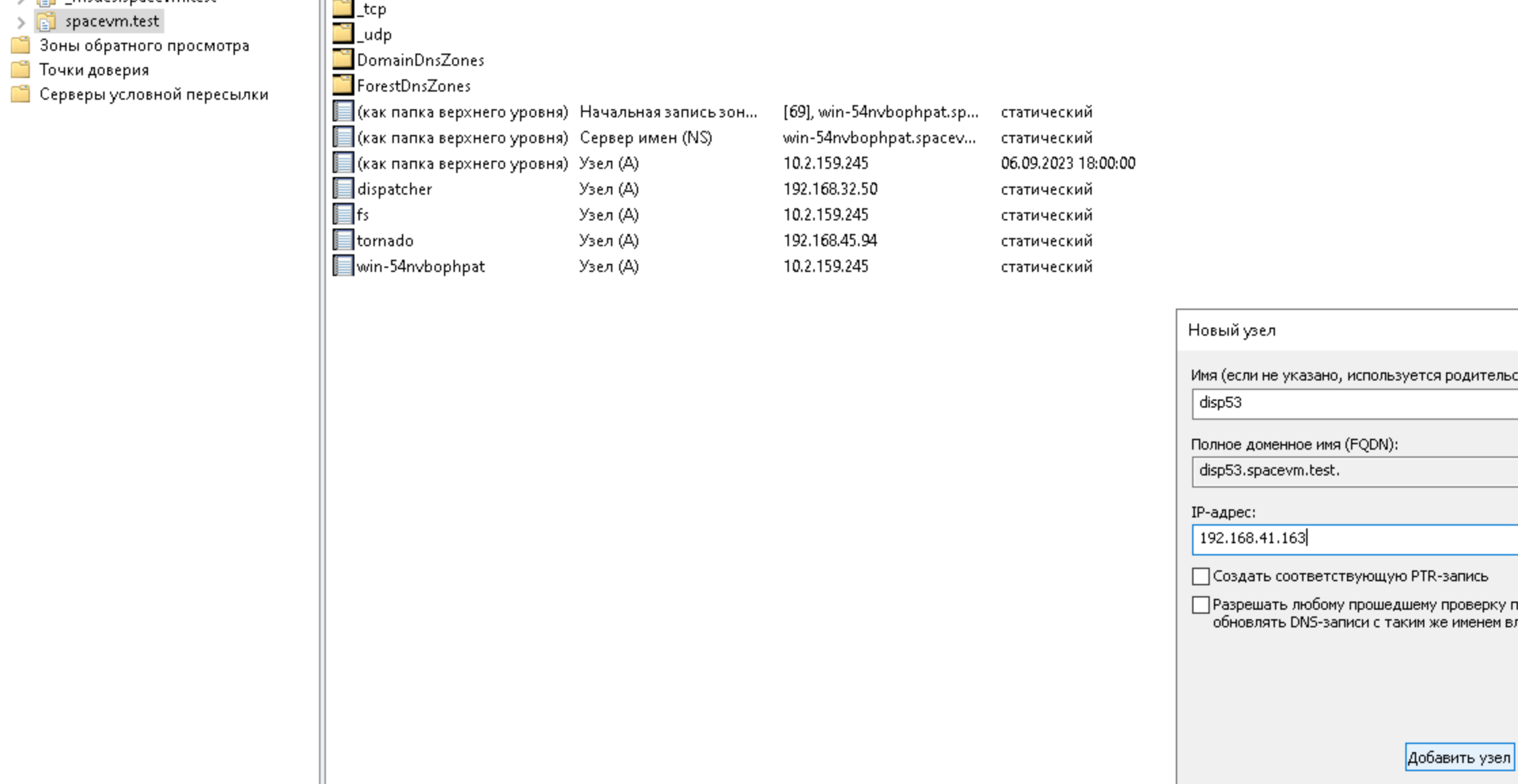 Если доменные имена были не настроены, то необходимо перейти в службу DNS и прописать соответствие IP-адреса диспетчера указанному доменному имени.