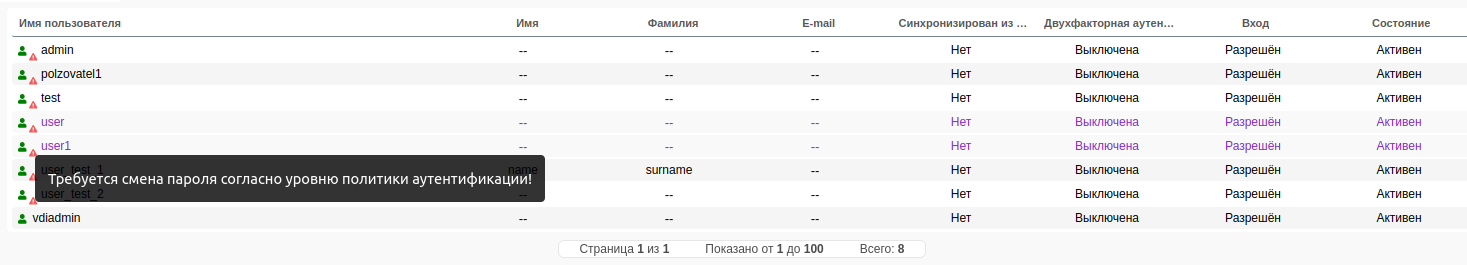 При этом, если ранее из-за повышения уровня безопасности пользователю уже было установлено требование на смену пароля, но оно не было выполнено, при понижении уровня безопасности требование на смену пароля сохранится.