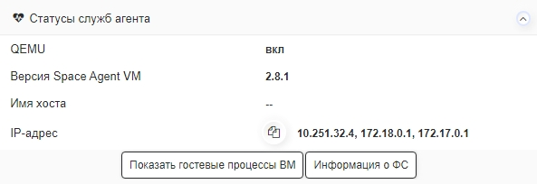 Убедиться в наличии раздела Статусы служб агента и информации о Space Agent VM.