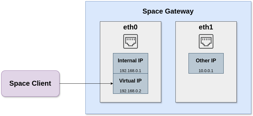 Возможно добавление нескольких сетевых интерфейсов хосту шлюза. В этом случае также в качестве основного управляющего сетевого интерфейса будет использован первый сетевой интерфейс в системе.