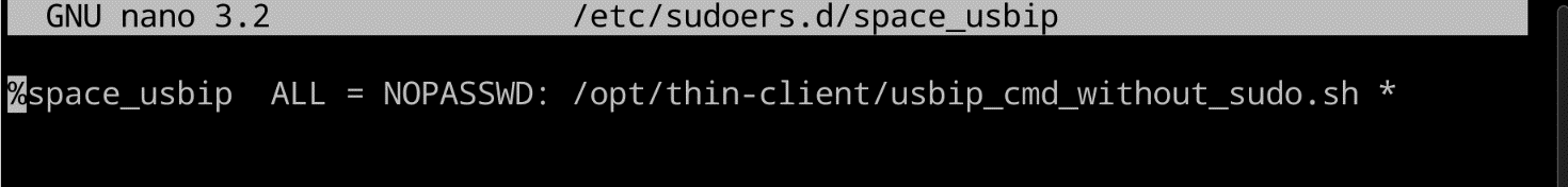 %space_usbip ALL = NOPASSWD: /opt/thin-client/usbip_cmd_without_sudo.sh * -