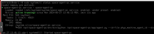 sudo systemctl status space-agent-pc.serviceЕсли сервис запущен и работает корректно, состояние службы должно быть
